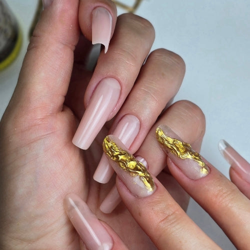 Muted Blush Future Hard Gel is a soft, dusty pink with a refined, muted finish. Its new self-levelling formula ensures easy application and delivers a strong yet flexible result - perfect with gold chrome nail art.