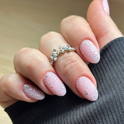 Silver Spec-tacular Top Coat is the ultimate way to elevate any manicure. A velvet matte finish, infused with dazzling irregular silver glitter flakes.