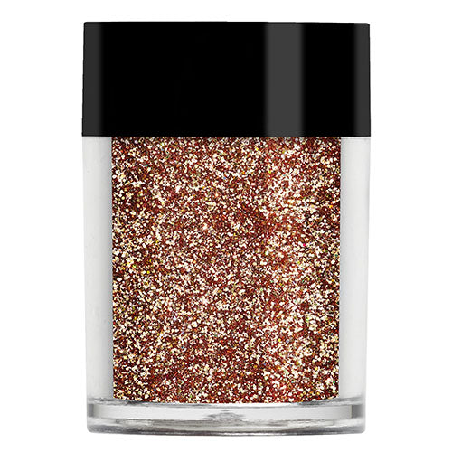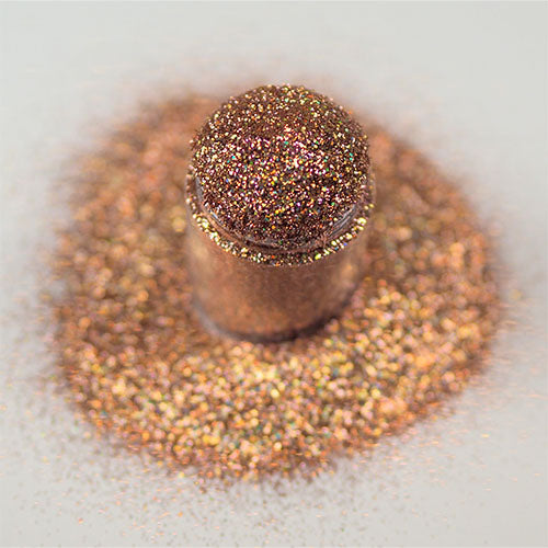 Babydoll Multi Glitz Chunky Nail Glitter is a three toned nail art glitter in a chunky multi glitz cut consisting of light-toned peach, brown and gold pieces.