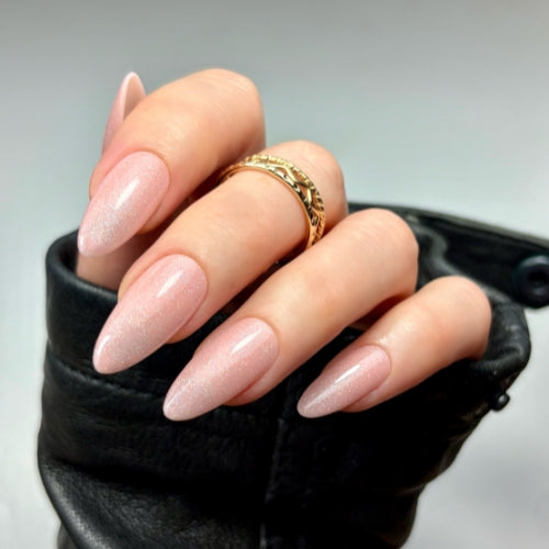 Bruges is a pastel pink infused with a delicate shimmer that adds a luminous, almost iridescent glow. It exudes a romantic and dreamy vibe, reminiscent of a soft blush or gentle rose, perfect for creating a subtle, glamorous look with a hint of shimmer.