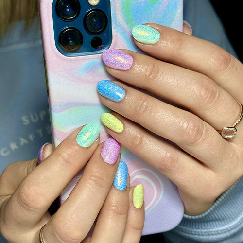 Iridescent glitters work perfectly over gel nail polish and are great for ombré nails.