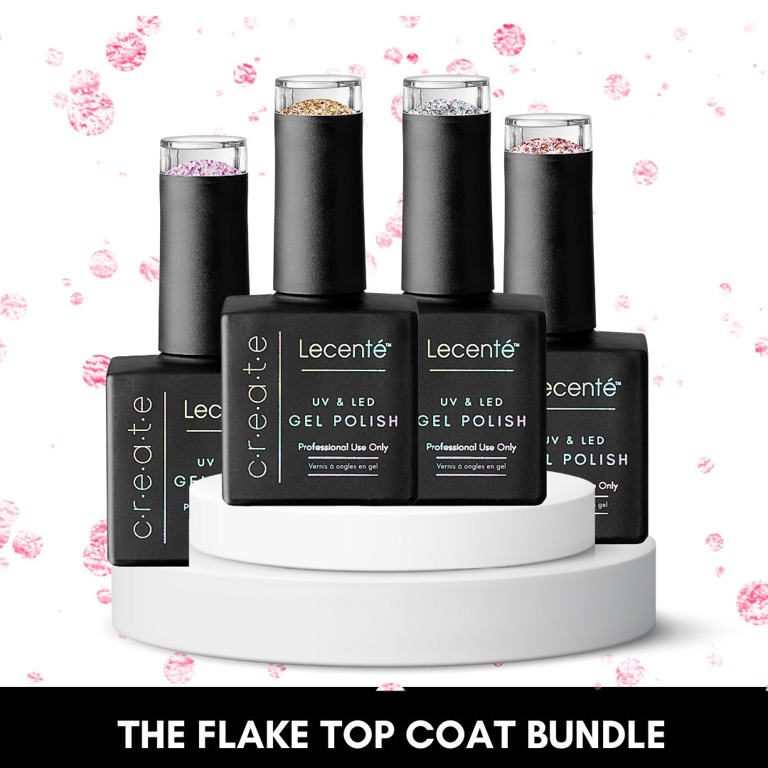 4 dazzling effect top coats, perfect for the festive season! Each is infused with fine holographic flakes, available in Pink, Rose, Silver, and Gold.