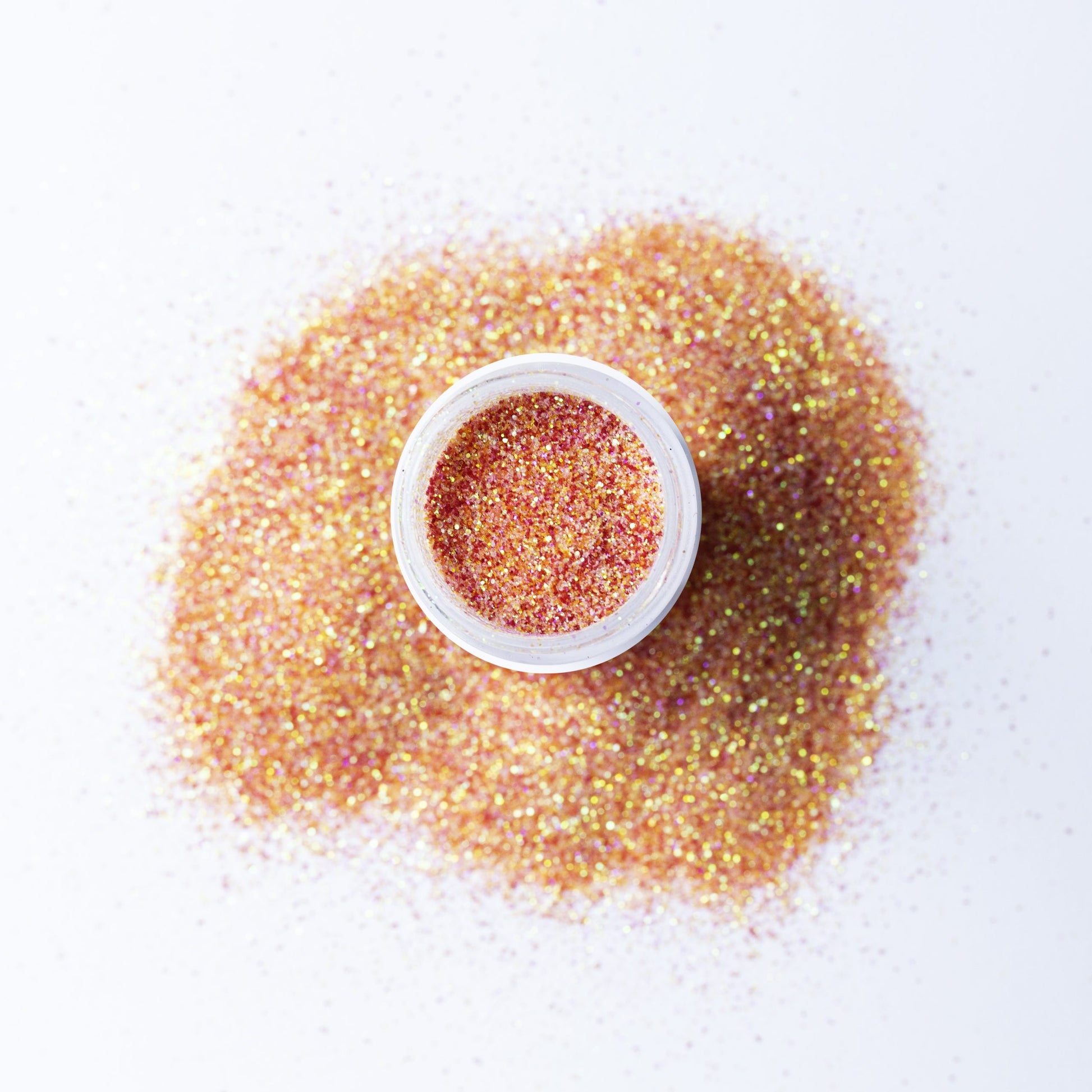 Sorbet Iridescent Multi Glitz Glitter can be used to create beautiful glitter nail designs with shades of mango, orange, strawberry & Lemon.